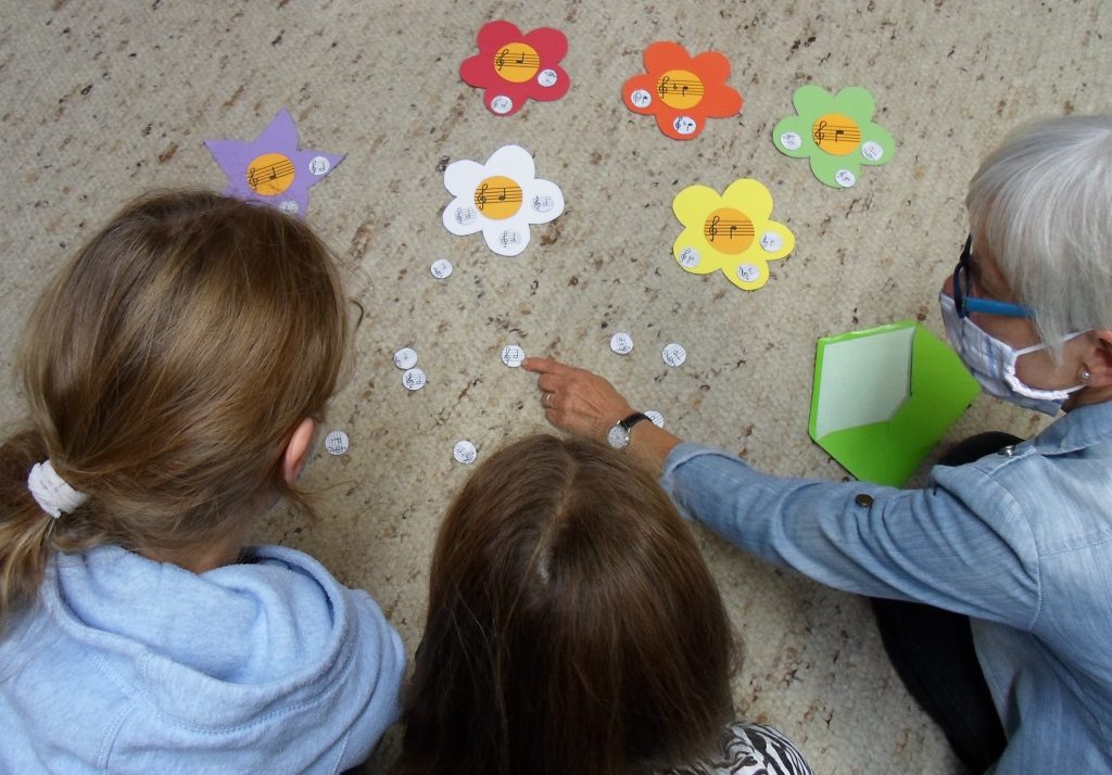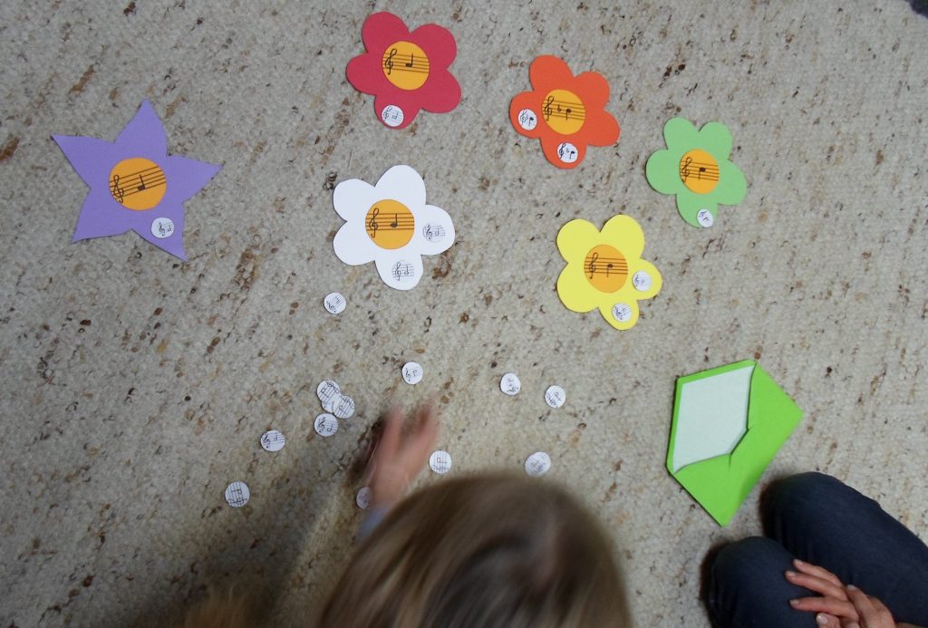 Mit verschiedenen von mir selbst erdachten Spielen motiviere ich die Kinder zum Lernen der Noten und anderen Elementen der Musiktheorie: